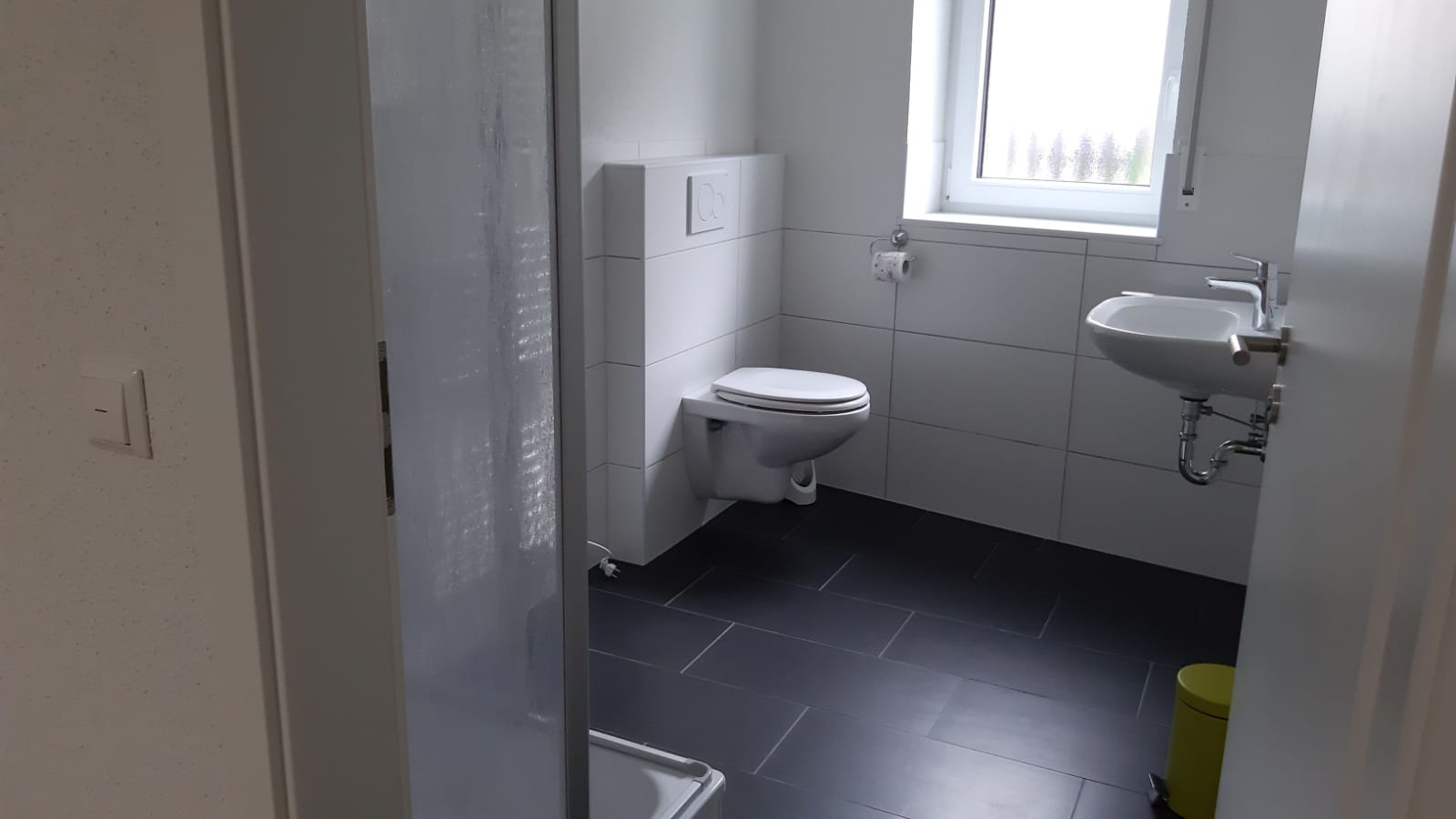 Die neu und modern ausgestattete WG - Wohnung, bestehend aus 3 Einzelzimmern und einem Doppelzimmer, verfügt über 2 schöne Bäder mit je einem WC und einer Dusche, einen einladendem Aufenthaltsraum mit großem Esstisch, sowie einer nagelneuen Küche samt Austattung.